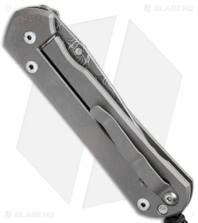 This Large Sebenza 21 features a stainless Devin Thomas Raindrop Damascus blade and satin finished titanium handle face with a “Raindrop” computer generated graphic (CGG). The framelock and pocket clip are bead blast finished. Matched with a silver thumb lug and spacer. Includes lanyard and leather pouch.