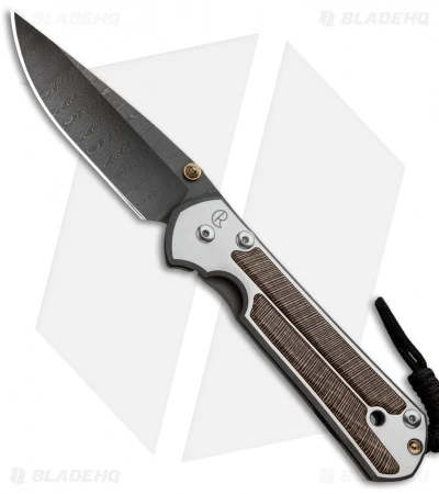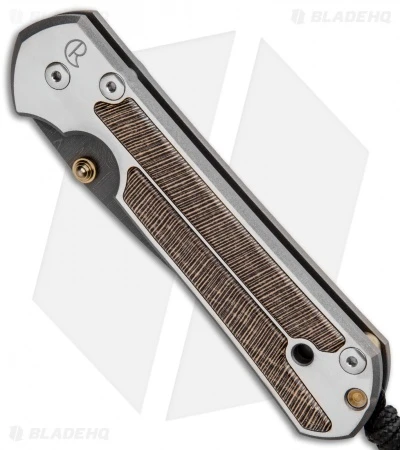 We are excited to present this exclusive Chris Reeve Large Sebenza 21 folder with striped platan inlays! The inlays are set into the satin finished titanium frame for added style and improved grip. Each inlay fits exactly into a machined pocket, with two on the front and one on the back. The Devin Thomas Ladder Damascus blade comes with a gold anodized thumb lug and matching spacer on the handle. The handle edges, lockbar and pocket clip are bead blast finished.