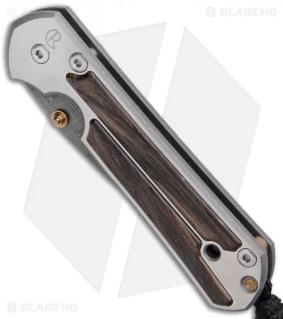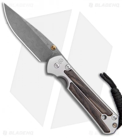 This Chris Reeve Small Sebenza 21 features a titanium handle with bog oak wood inlays. The blade is beautiful basketweave damascus steel. The gold colored thumb stud and spacer give it a nice accent. Frame lock for one handed opening and closing. Includes lanyard and titanium clip.
