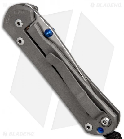 This Small Sebenza model has a stonewashed blade with double blue thumb lug openers.