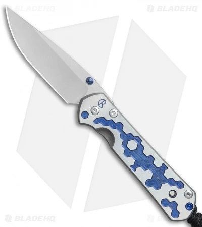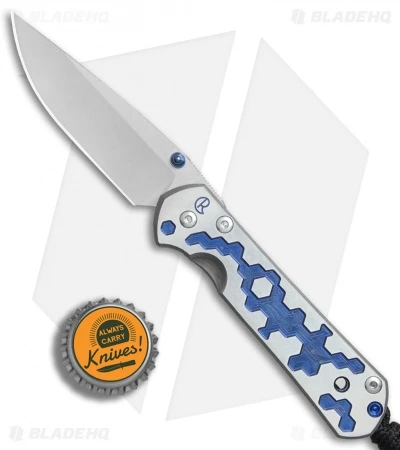 This Small Sebenza 21 features a satin finished titanium handle face with a “Small Circuits” computer generated flag graphic (CGG). The framelock and pocket clip are bead blast finished. It is outfitted with a stonewashed S35VN stainless steel blade with a blue thumb lug. Includes lanyard and leather pouch.