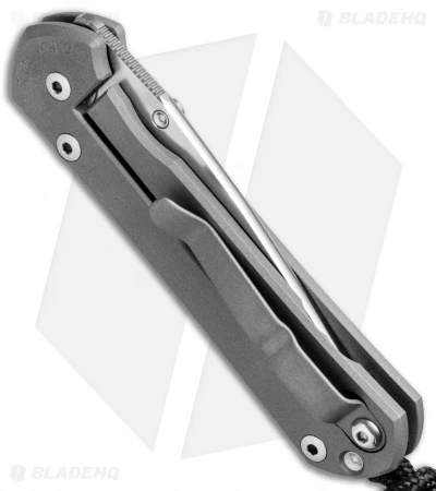 This Small Sebenza 21 features a bead blasted titanium handle face with a “Think Twice Code” computer generated graphic (CGG). The frame lock and pocket clip are bead blast finished. It is outfitted with a stonewashed S35VN stainless steel blade with a thumb lug. Includes lanyard and leather pouch.