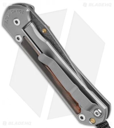 - Milled titanium handle scales with Macassar ebony inlays.