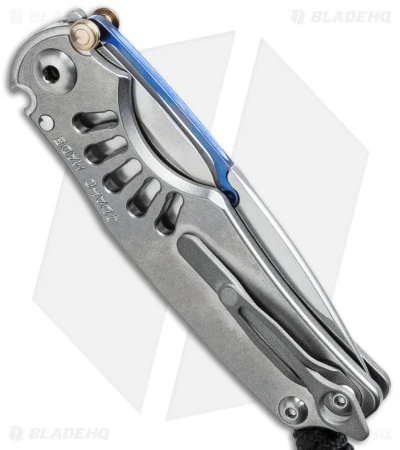 This Ti-Lock has a stonewash finished S35-VN stainless steel blade and titanium handle. The handle has the “Blue Steam” graphic and a blue sapphire cabochon. Includes bead blast finished pocket clip.